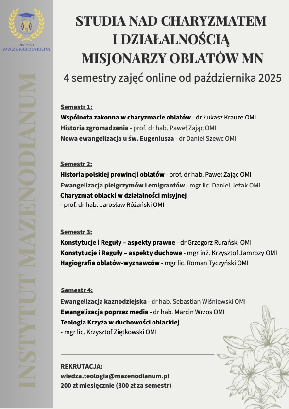 Dr Sebastian Wiśniewski OMI, Instytut Mazenodianum, Motyw męczeństwa za wiarę we współczesnym kaznodziejstwie misjonarzy oblatów Maryi Niepokalanej